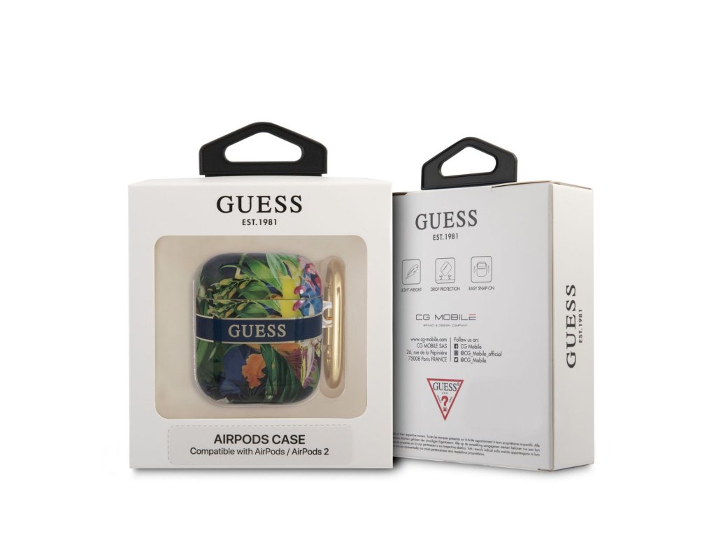 Guess TPU Flower Print Puzdro pre Airpods 1/2 - Blue