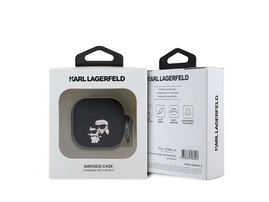 Karl Lagerfeld 3D Logo NFT Karl and Choupette Silikónové Puzdro pre AirPods 4 - Black