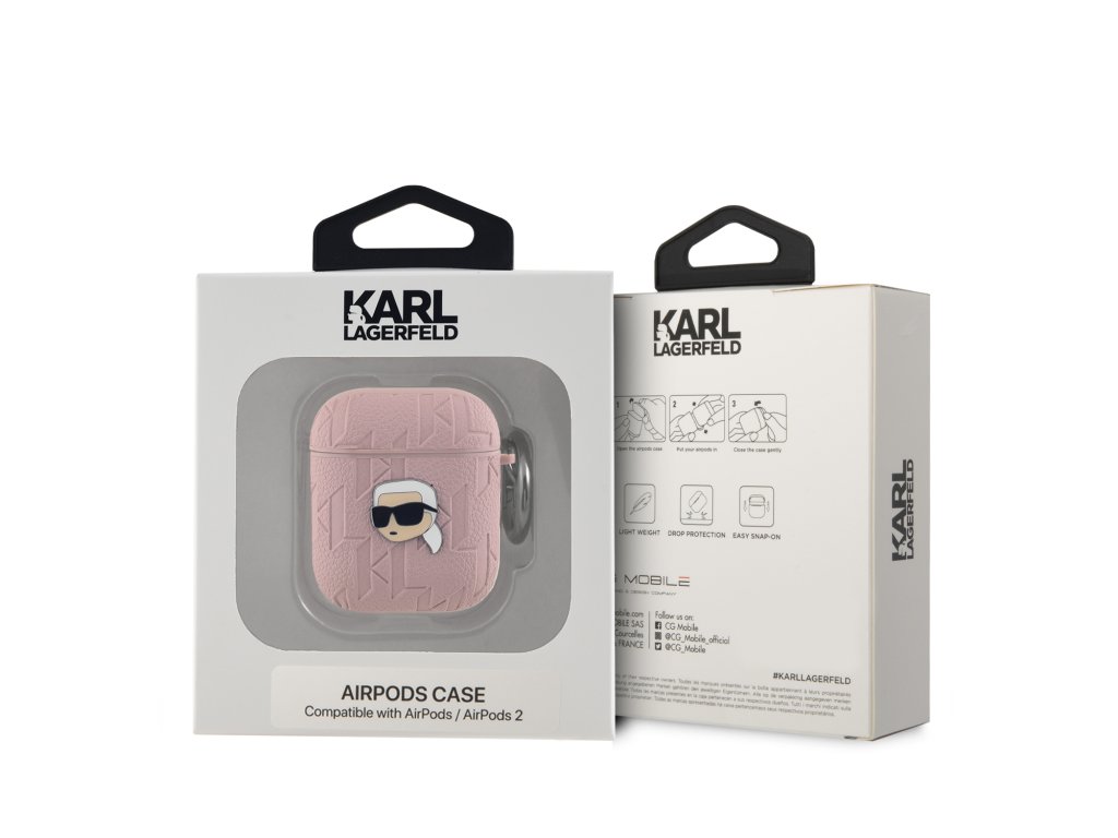 Karl Lagerfeld PU Embossed Karl Head Puzdro pre AirPods 1/2 - Pink