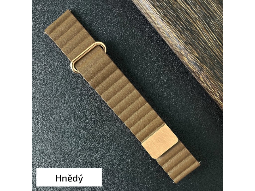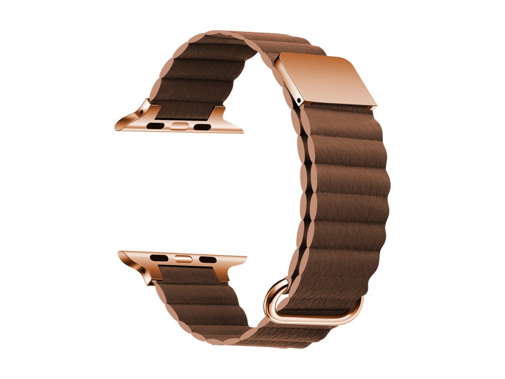 Prémiový kožený magnetický loop na Apple Watch - Hnedý